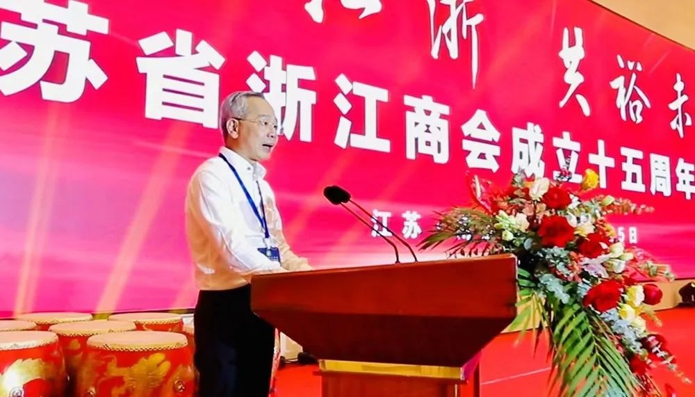 浙江省工商联党组成员、副主席元成茂在致辞中表示,近年来, 团结引领百万在苏浙商,主动融入长三角一体化发展国家战略,参与组建长三角浙商联盟、江苏浙商联盟,系统扎实推进浙商回归工程,并与在苏各浙江籍商会通力合作,较好实现了抱团发展的目标,为全国浙江商会树立了典范,也为苏浙两省经济社会发展作出了卓越的贡献,展现了浙商新担当、新形象。希望 与广大在苏浙商增强信心、迎难而上,勇做新时代的弄潮儿;团结带领广大会员企业以科技创新为动力,以转型升级为重点,以绿色低碳为方向,在高质量发展赛道上奔跑;带领会员企业继续融入长三角一体化,拓展会员之间、区域之间、行业之间的交流合作,在长三角一体化赛道上奔跑;发挥浙江与江苏经济社会发展的桥梁和纽带作用,引导广大在苏浙商常回家看看,积极投身乡村振兴、助力山区26县跨越式发展建设,在共同富裕赛道上奔跑。