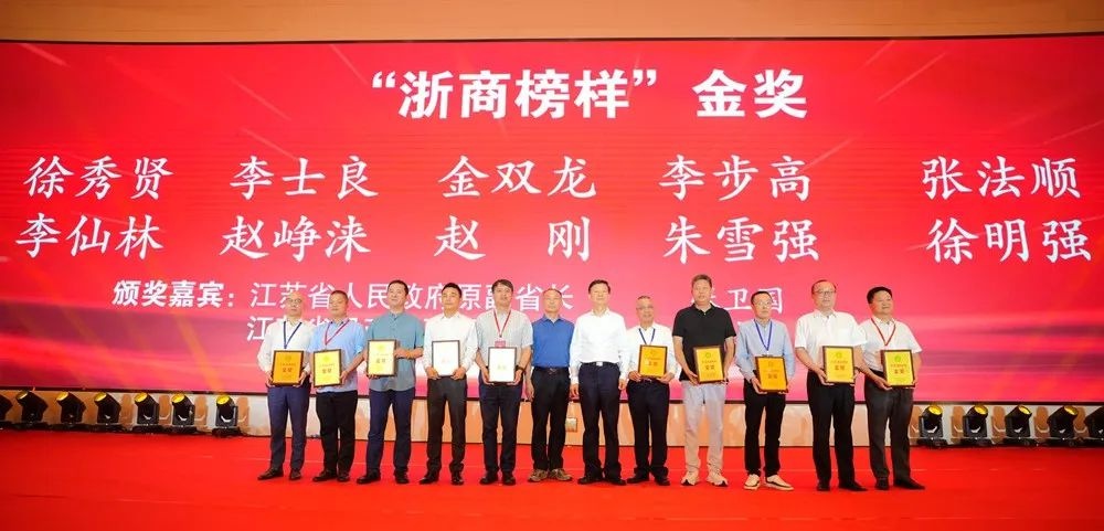 会议举行了首届在苏“浙商榜样”颁奖仪式。汇通达网络股份有限公司党委书记、联合创始人、总裁徐秀贤等10名浙商企业家获金奖,江苏宁枫投资发展集团有限公司董事长彭江萍等20名浙商企业家获先锋奖,江苏中孚文化产业集团有限公司董事长王琴等12名浙商企业家获优秀奖。金奖获得者、江苏伟杰投资实业集团有限公司董事长金双龙代表全体获奖企业家发言。