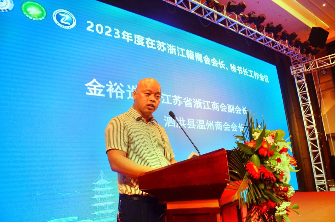 在会议交流环节, 常务副会长、张家港市浙江商会会长金双龙, 副会长、泗洪县温州商会会长金裕选,泰州市姜堰区浙江商会会长葛建桥, 副会长、盱眙县温州商会会长吴志新等分别介绍了商会工作的经验体会。