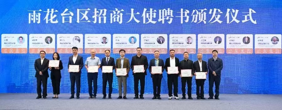 招商推介会上,雨花规划和自然资源分局、仲量联行、长城所分别介绍了全区国土空间规划及雨花新滨江产业规划、数字城建设规划。雨花台区发改委、中国(南京)软件谷管委会、雨花经济开发区相继作了招商资源推介。本土企业嘉环科技、欧帝电子以及南京商业地产商会现场交流了在雨花创业发展的心得。雨花台区委区政府主要领导为22位招商大使颁发了聘书;区投资促进工作领导小组办公室与16家商会签订了招商合作战略协议。受徐秀贤会长委托,楼国海执行会长代表我会上台接受聘书并签订协议。