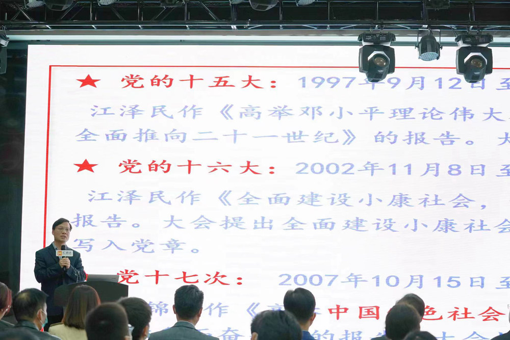 会议邀请江苏省委党校经济学教研部副主任孙耀武教授从时代背景、历史意义、主题内容等方面对二十大报告精神进行了全面准确、深入浅出的解读。通过学习领会,大家深刻理解了二十大报告的精神实质、核心要义、使命任务和实践要求,充分认识到党的二十大是一次高举旗帜、凝聚力量、团结奋进的大会,在新时代党和国家发展进程中具有重大历史意义和现实意义,报告中“加快构建新发展格局”“增进民生福祉”“推动绿色发展”等四大战略目标和任务的提出,为民营企业未来发展提供了精神指引。