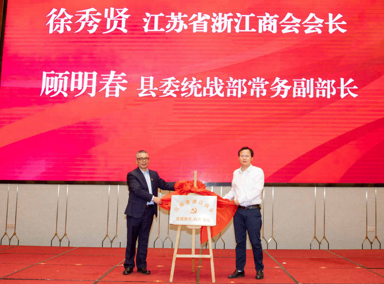 会上,徐秀贤会长和泗洪县委统战部常务副部长顾明春共同为 党建教育(泗洪)基地揭牌。