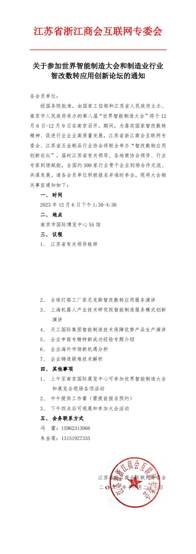 关于参加世界智能制造大会和制造业行业智改数转应用创新论坛的通知