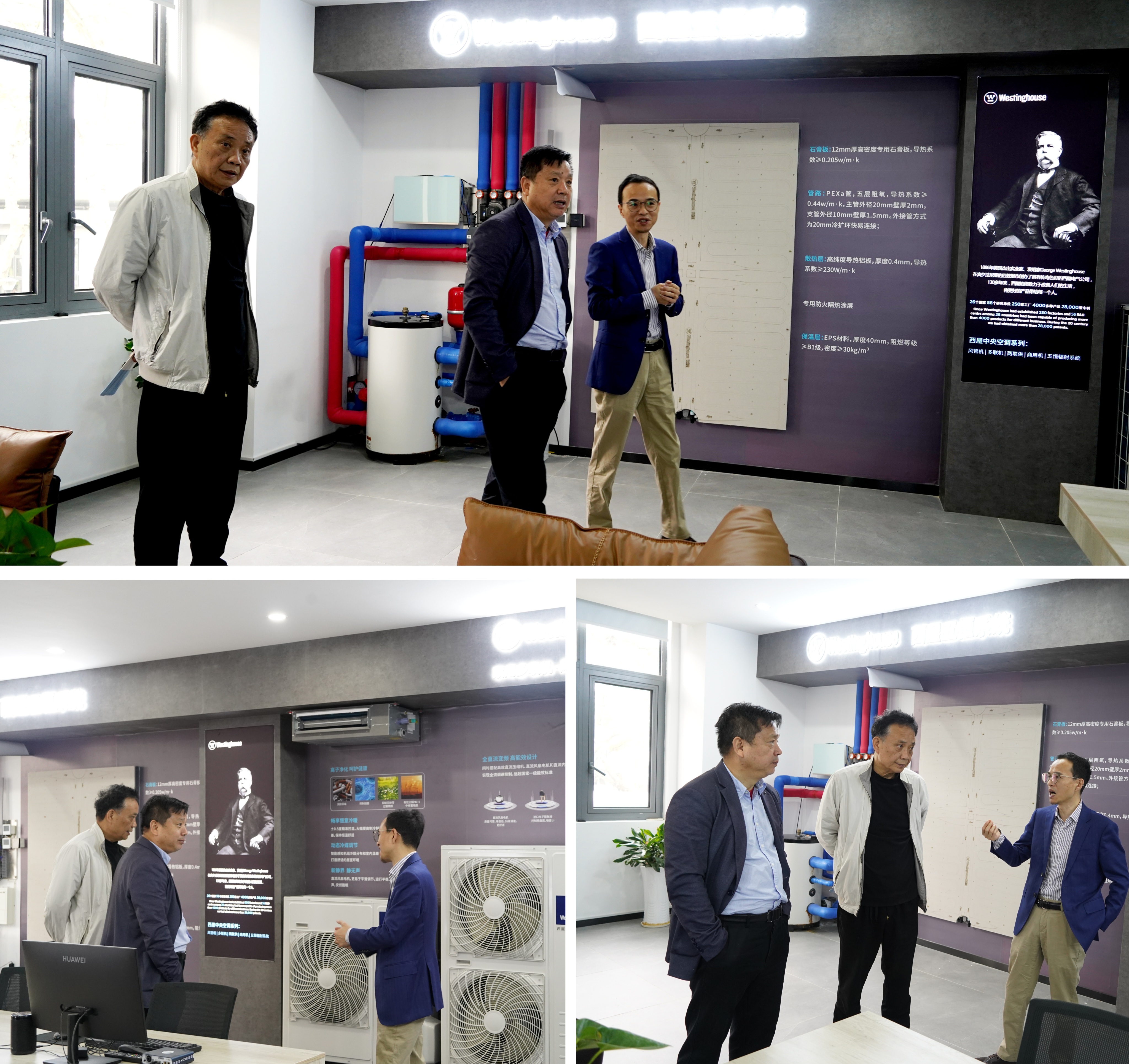 座谈之余,陈国建执行会长一行还在刘尧峰总经理、俞江副会长等陪同下,实地考察了西屋空调(南京)有限公司位于南师大玄武科技园的产品展示和办公区域。
