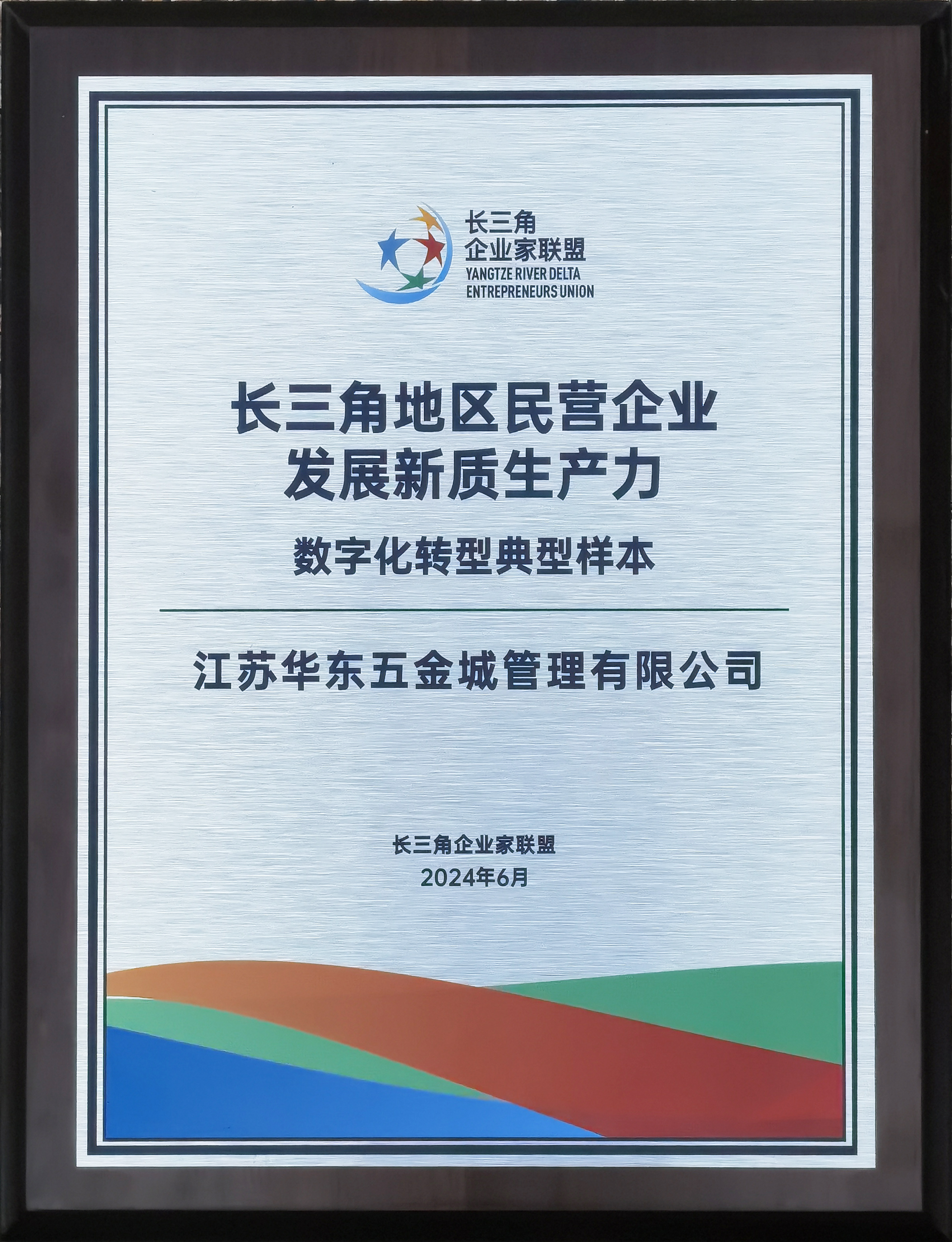 我会执行会长单位华东五金城入选长三角新质生产力典型样本