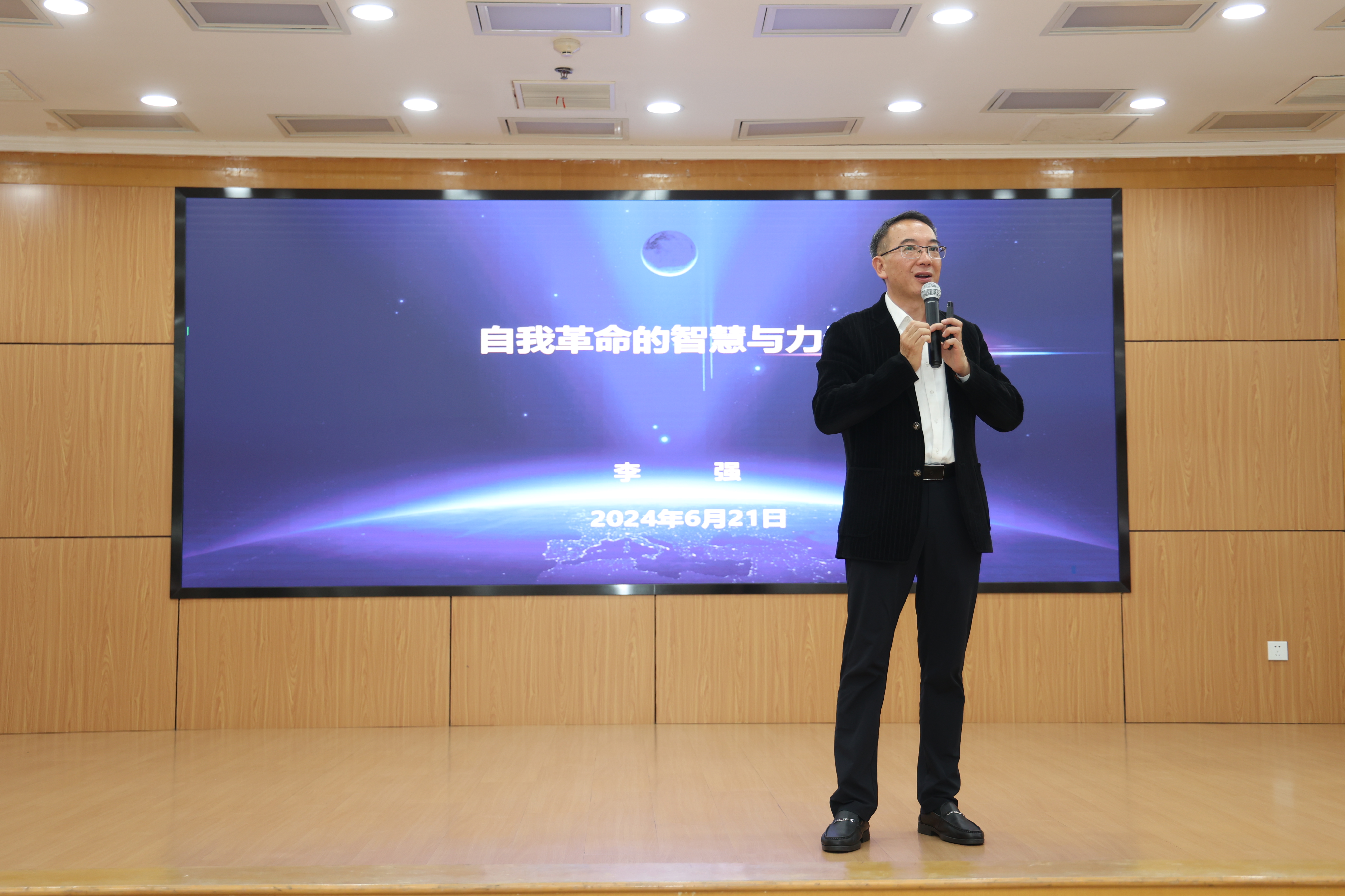李强导师以“自我革命的智慧与力量”为演讲主题,围绕以党的自我革命引领社会革命的理论逻辑、历史逻辑和时间逻辑展开详细论述,系统阐释了善于学习、思想建党,严明纪律、从严治党,勇于斗争、精神强党等方面的伟大成果和重要意义,并结合实际、深入浅出地分析了如何通过不断地变革创新实现组织或个人自我革命的实践途径与方法。