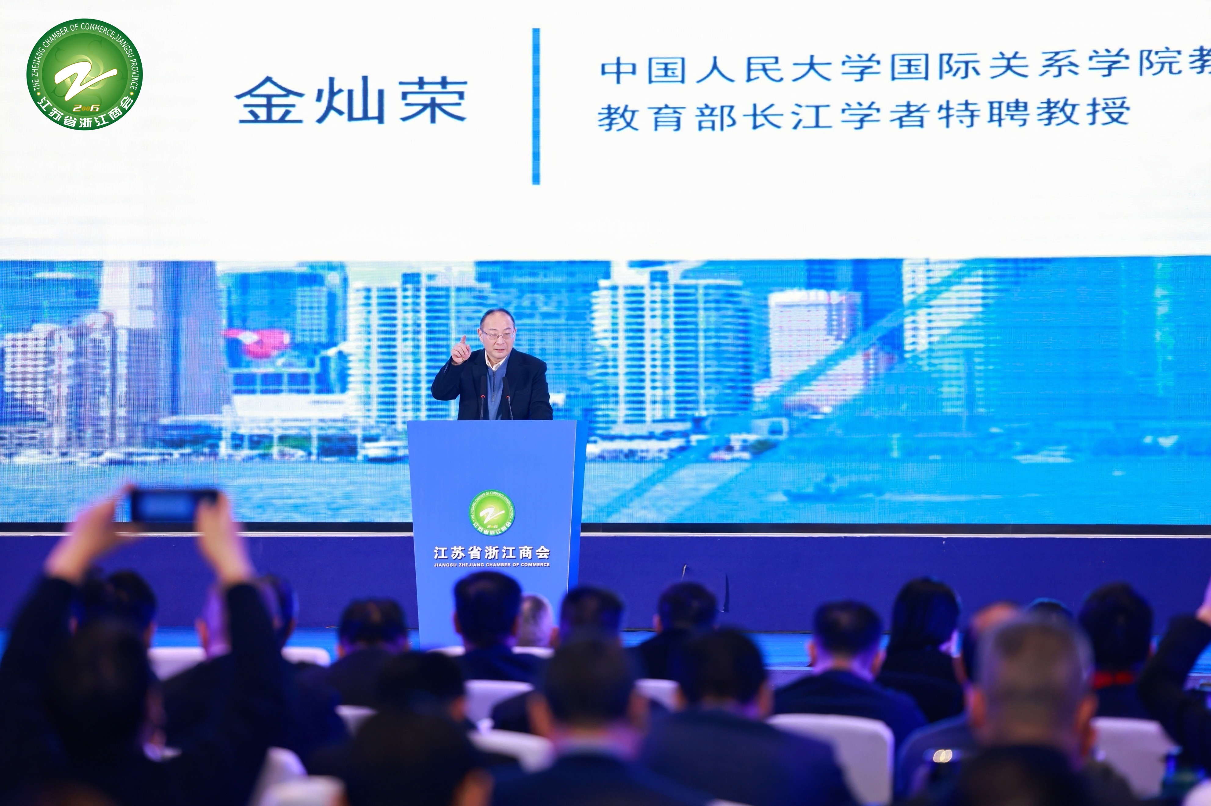 研讨会特邀中国人民大学国际关系学院教授、教育部长江学者特聘教授金灿荣发表《百年变局加速演进背景下的中国与世界》主题演讲。他以“当前世界百年未有之大变局加速演进”为背景,围绕中国在百年变局中面临的机遇和挑战以及应对策略等方面进行详尽的分析,重点讲述了百年来中西方的历史文化背景以及中国发生的变化、面临的机遇与挑战等精彩内容。他用敏锐的洞察力和风趣幽默的表达,将当下的世界格局形势娓娓道来,将复杂的国际局势举重若轻地展现,为浙商企业家在今后一段时期面临的机遇和挑战指明了前景。