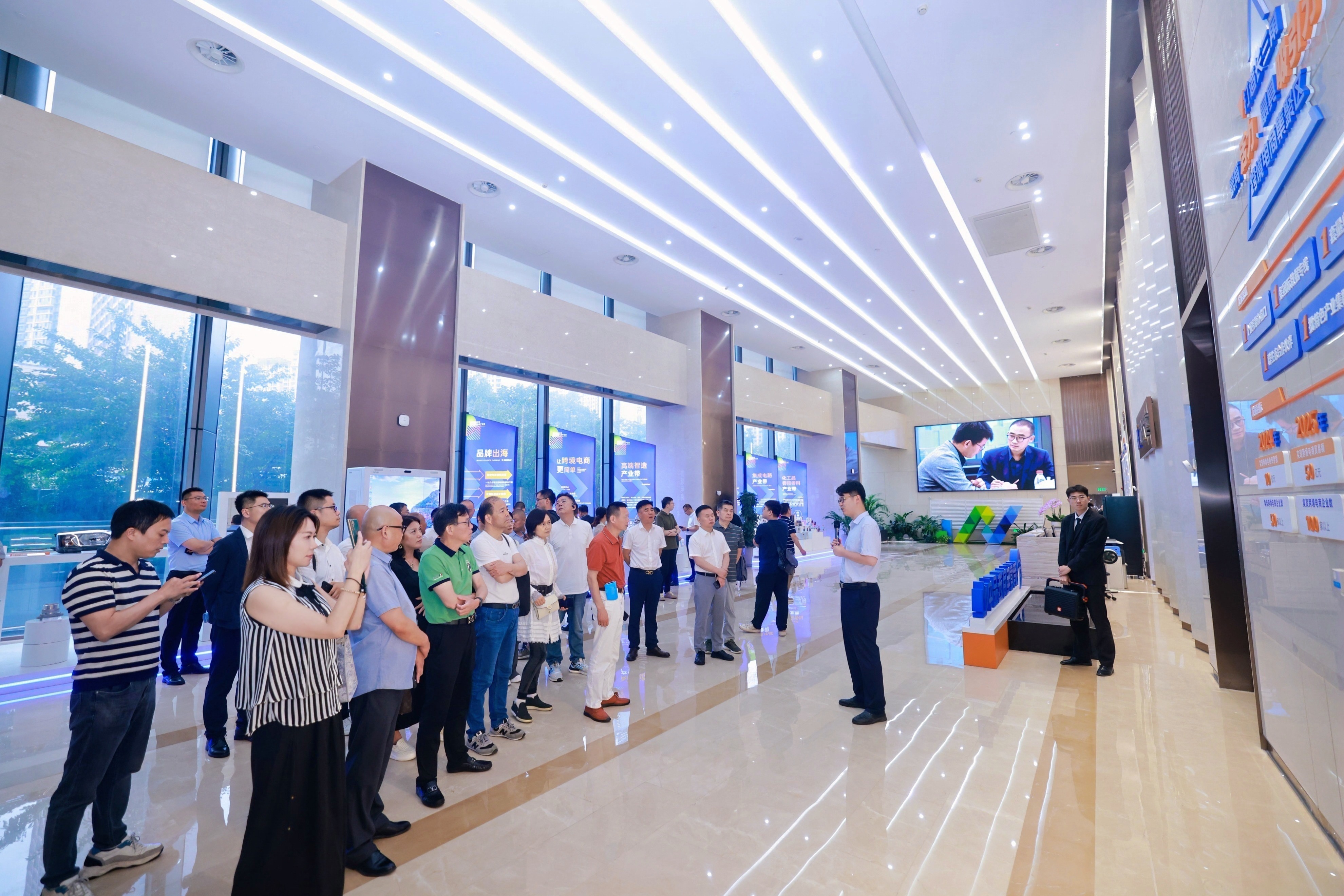 会议最后,与会代表们实地考察了南京江北新区跨境电商产业园。该产业园依托新区"双区叠加"优势,已形成集平台运营、仓储物流、金融服务、人才培养等功能于一体的产业生态体系。代表们详细了解了园区规划建设、功能布局、服务配套等情况,对园区完善的产业生态和优越的发展环境给予高度评价,多家企业现场表达了入驻意向。