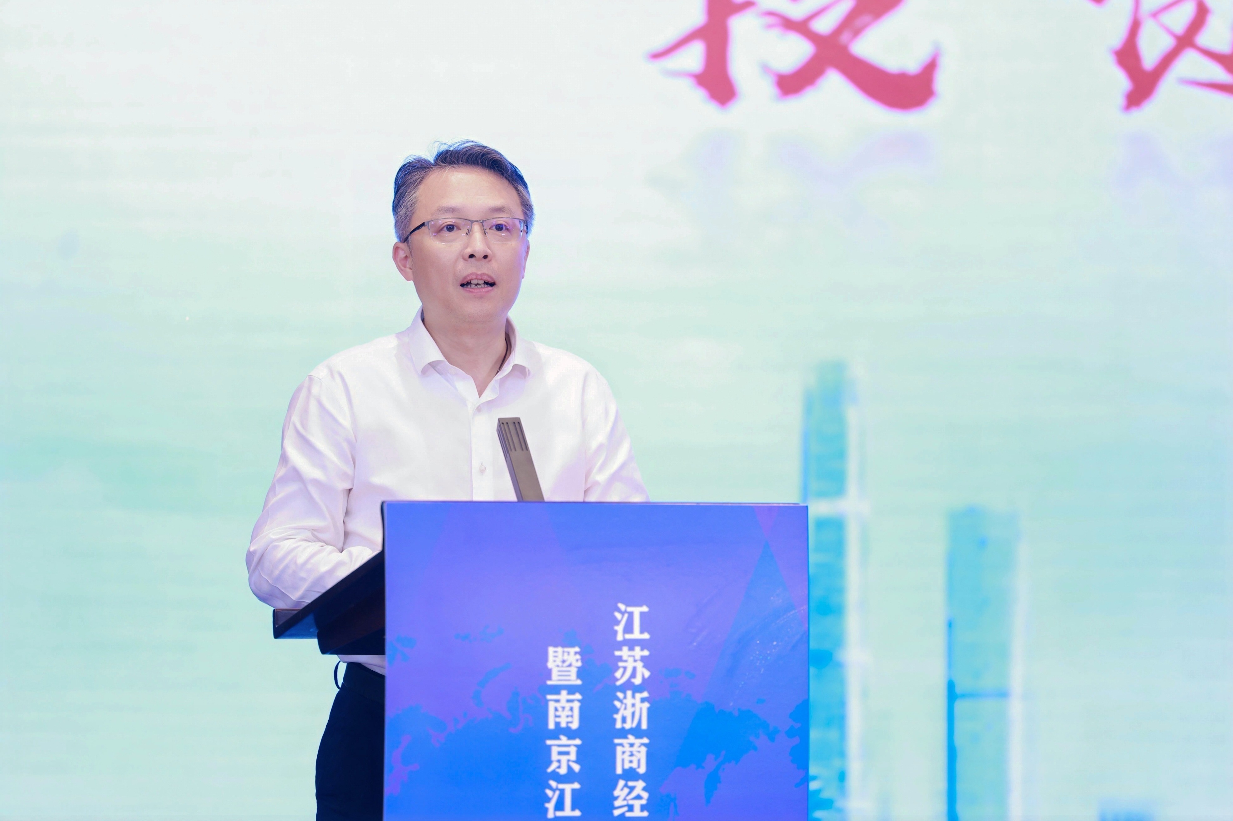 南京江北新区党工委委员、管委会副主任陈文斌在致辞中表示,浙商是长三角经济动脉的“黄金纽带”, 是连接两省经济的重要桥梁。南京江北新区作为国家级新区和自贸区南京片区所在地,将为浙商提供“优先支持人才培养、优先提供金融服务、优先保障供应链”的“三个优先”全方位保障。他强调,将深化“政企联动”,优化“政策+服务”双支撑,深化“跨境电商+产业带”融合,构建“人才+科技”双轮驱动。