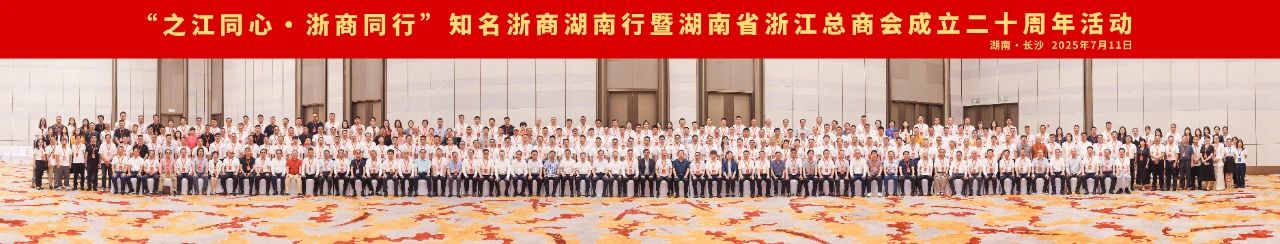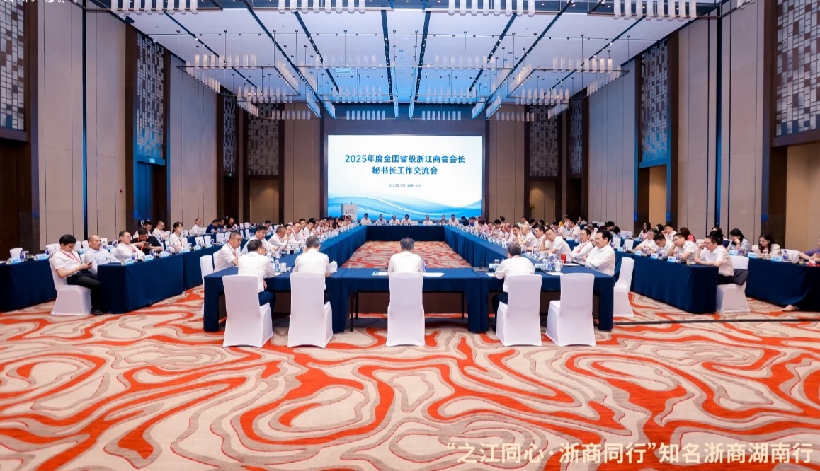7月10至12日,“之江同心・浙商同行”知名浙商湖南行暨湖南省浙江总商会成立二十周年系列活动在湘举行。浙湘两省有关主要领导,全国39家省级浙江商会会长、秘书长和知名浙商代表等齐聚一堂,共谋发展、共话未来。期间召开了2025年度全国省级浙江商会会长、秘书长工作交流会。