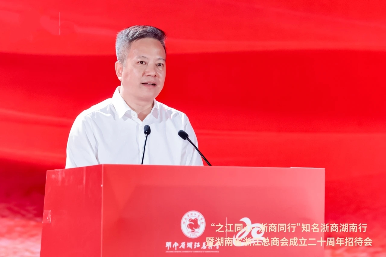 湖南省政协副主席、省工商联主席张健高度肯定了浙商在连接两地交流合作、参与湖南社会经济建设、助力慈善公益事业等方面取得的成绩,并对广大浙商提出了三点希望:一是当好两地合作的“领头雁”,充分发挥桥梁纽带作用,助力两地合作从“项目对接”走向“生态共建”;二是勇当创新发展的“排头兵”,以科技为支撑,在发展新质生产力的赛道上跑出“浙商加速度”;三是持续擦亮浙商“金字招牌”,加强自身建设,提升服务效能,为促进“两个健康”再立新功。