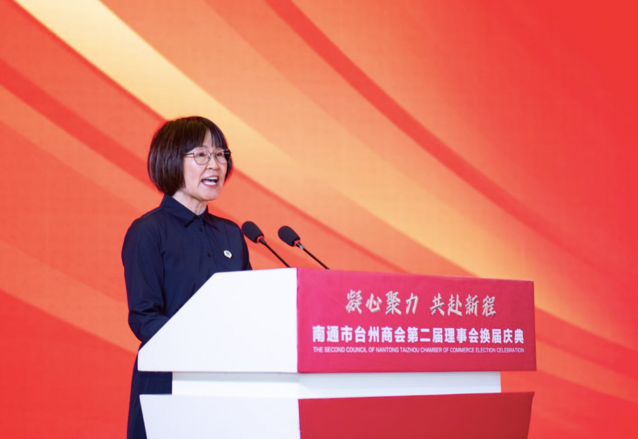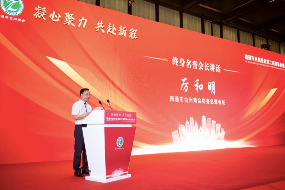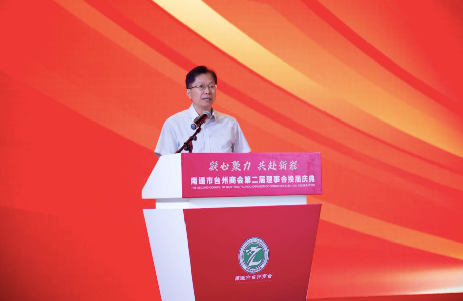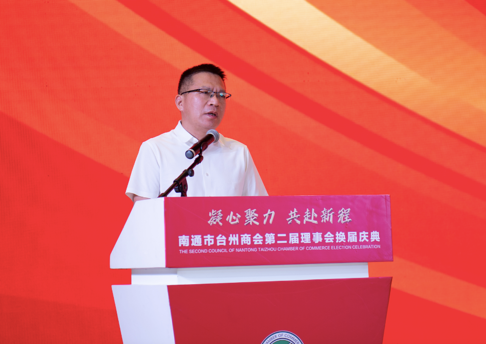 会长、江苏浙商联盟主席徐秀贤在会上讲话。他指出,南通市台州商会作为浙商群体的杰出代表,始终秉持“服务立会、团结兴会”的工作宗旨,积极推进在通浙商创业创新、做优做强,在政企对接、会员服务、产业协作、公益反哺等方面成绩斐然,为南通市经济社会发展作出了重要贡献。希望商会新一届理事会聚焦南通“一枢纽五城市”定位,引导会员企业加快数字化转型,在新兴领域培育竞争优势,实现“台州制造”与“南通智造”双向赋能。江苏浙商联盟将持续发挥纽带作用,积极推动台州商会与各家兄弟商会联动发展,在产业链互补、科创成果转化上形成“1+1>2”的聚变效应,为苏浙共建长三角世界级城市群贡献浙商的智慧和力量。