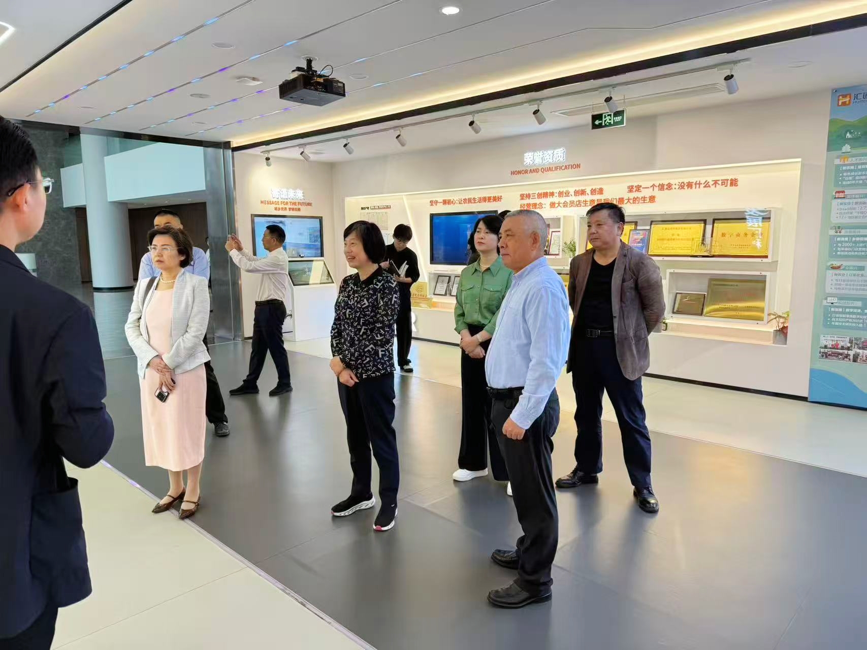 调研组首站抵达我会会长单位汇通达网络股份有限公司。在徐秀贤会长的陪同下,庄莉萍书记一行实地考察了企业数字化赋能乡镇零售生态的运营模式,详细了解其产业互联网平台、供应链体系及SaaS服务成果。庄书记充分肯定了汇通达在推动城乡消费升级、服务乡村振兴中的创新实践,并鼓励企业继续发挥龙头作用,为浙江数字经济发展注入新动能。