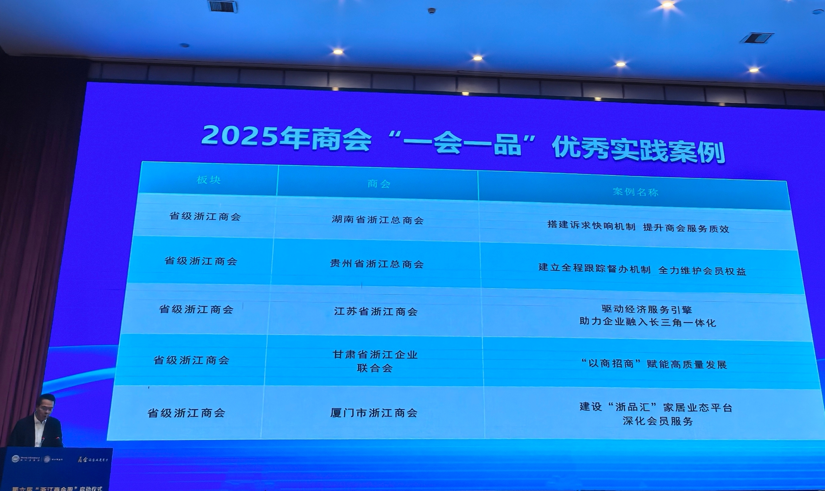 启动仪式上,浙江省工商联组织评选的2025商会“一会一品”优秀实践案例正式发布。 关于“驱动经济服务引擎 助力企业融入长三角一体化”实践案例获评2025商会“一会一品”优秀实践案例。